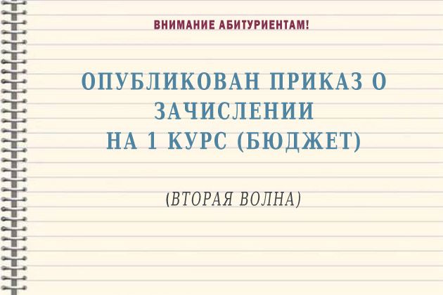Опубликован приказ о зачислении на 1 курс ВИВТ (бюджет - второй этап).